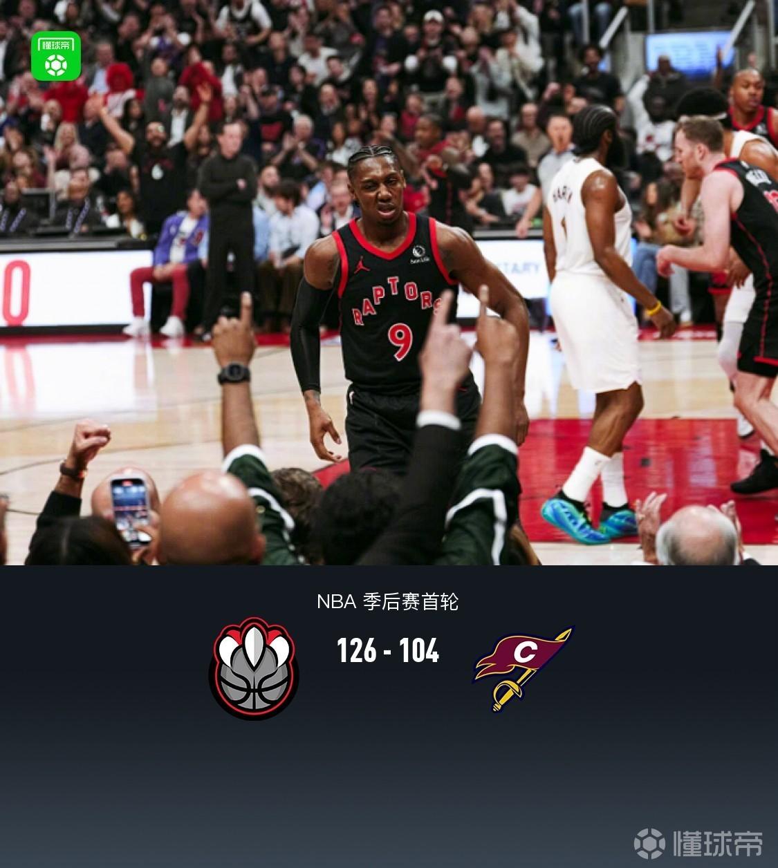 北京时间4月24日NBA 季后赛首轮G3,多伦多猛龙对阵克利夫兰骑士。前三节随后多数时间猛龙保持领先,但骑士依旧能紧咬比分,末节猛龙巴雷特、巴特尔领衔轰出43-23彻底拉大分差,最终猛龙126-104骑士,大比分追至1-2。