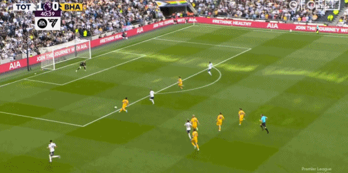 第39分钟,西蒙斯传球,波罗前插头球破门,热刺1-0布莱顿