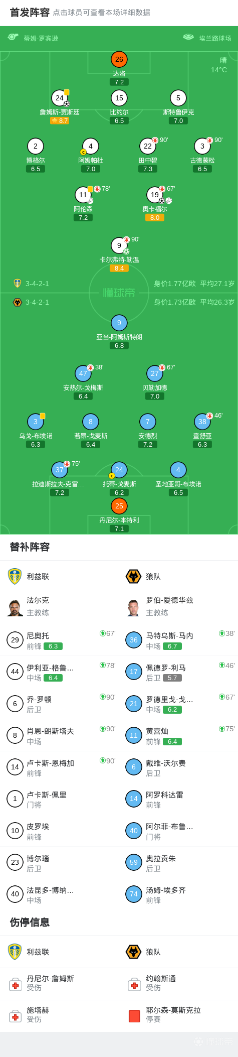 关键事件第18分钟,利兹联禁区内上演倒钩接力,贾斯汀倒钩破门,利兹联1-0领先